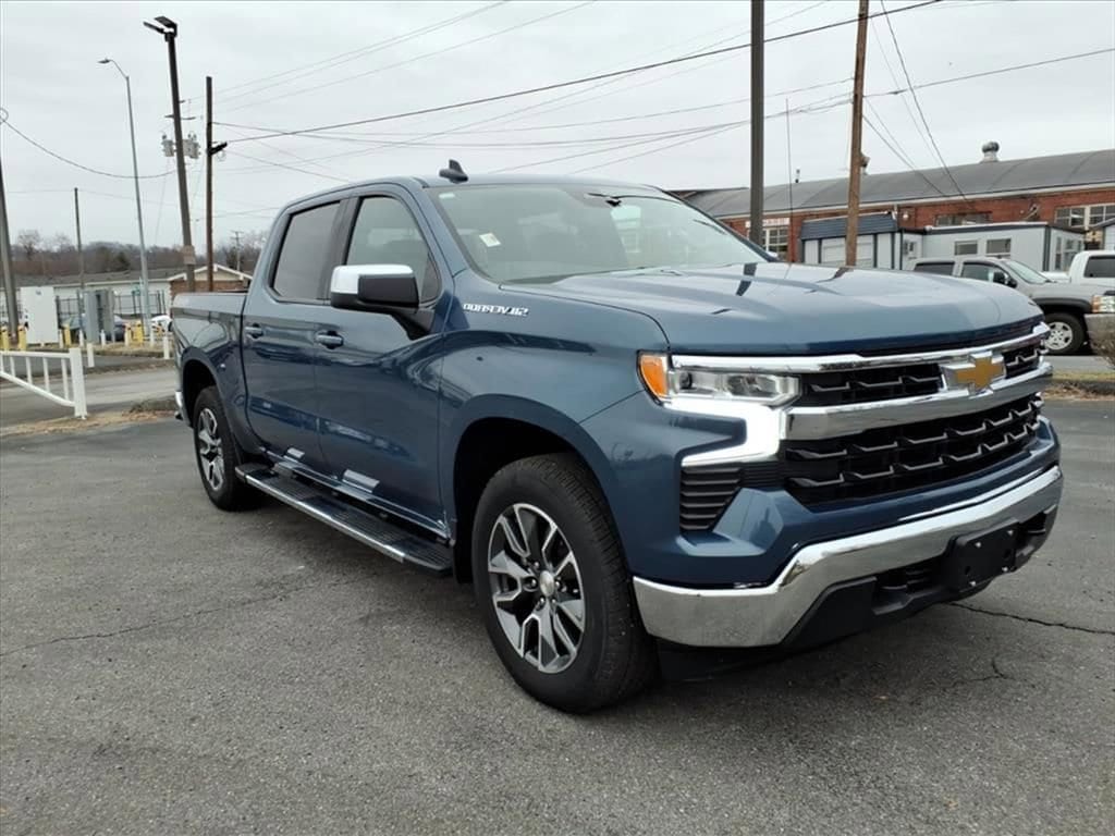 Lakeshore Blue Metallic 2024 Chevrolet Silverado 1500 LT 4WD 2.7L I4 Turbocharged DOHC 16V LEV3-SULEV30 310hp 8-Speed Automatic, 4WD, Jet Black w/Cloth Seat Trim, 10-Way Power Driver Seat w/Lumbar, 120-Volt Bed Mounted Power Outlet, 120-Volt Interior Power Outlet, Convenience Package, Dual Rear USB Ports (Charge Only), Dual-Zone Automatic Climate Control, Heated Driver & Front Outboard Passenger Seats, Heated Steering Wheel, High Capacity Suspension Package, Hitch Guidance, Keyless Open & Start, Standard Suspension Package, Trailering Package, Wrapped Steering Wheel.
