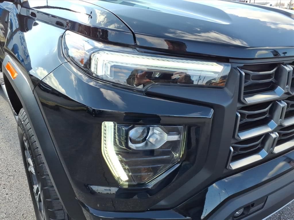 Onyx Black 2023 GMC Canyon AT4 4WD 2.7L Turbo 4WD, 120-Volt Bed Mounted Power Outlet, 2 Rear USB Ports in Center Console (Charge-Only), 6-Way Power Passenger Seat Adjuster, 8-Way Power Driver Seat Adjuster, AT4 Premium Package, Automatic Emergency Braking, Automatic Locking Rear Differential, Canyon Pro Safety, Driver & Front Passenger Illuminated Visors, Driver & Front Passenger Ventilated Seats, Driver Memory, Driver Seatback Map Pocket, Dual-Zone Automatic Air Conditioning, EZ-Lift & Lower Tailgate, Following Distance Indicator, Forward Collision Alert, Front LED Fog Lamps, Front Pedestrian & Bicyclist Braking, Heated Driver & Front Passenger Seats, Heated Power-Adjustable Outside Mirrors, Heated Steering Wheel, Inside Rear-View Auto-Dimming Mirror, IntelliBeam Automatic High Beam On/Off, Interior Overhead Courtesy Light w/Dual Reading Lamp, Lane Keep Assist w/Lane Departure Warning, Manual Rear-Sliding Window, MultiStow Tailgate, Navigation System, Perforated Leather-Appointed Seat Trim, Power Driver Lumbar Control Seat Adjuster, Power Passenger Lumbar Control Seat Adjuster, Preferred Equipment Group 4SG, Rear Center Fold-Down Armrest w/2 Cupholders, Rear of Console 120-Volt Power Outlet, Rear-Window Electric Defogger, Remote Vehicle Starter System, Tailgate Keyed Cylinder Lock, Tilt & Telescopic Manual Steering Column, Wireless Charging.