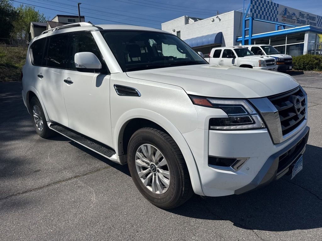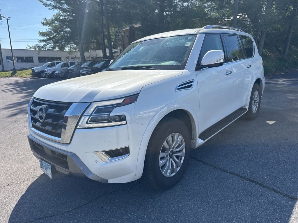 Aspen White Tricoat 2024 Nissan Armada SV 4WD 5.6L V8 DOHC 32V LEV3-ULEV125 400hp 4WD, Navigation System.